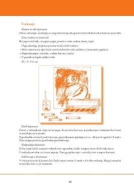 Pripravite papir, voščenke, vodene barvice, čopiče.