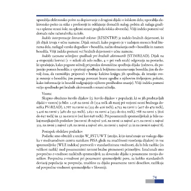 besedila. Višji indeks pomeni več bralnih dejavnosti v učne namene.