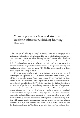 teachers and primary teachers about LLL (Dudás, 2005; 2006; Richardson,
