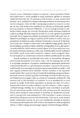 dni pouk, temveč raziskati uporabo družbenega omrežja Facebook pri po-
