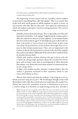 they have to be students again”. It also helps because it allows the stu-